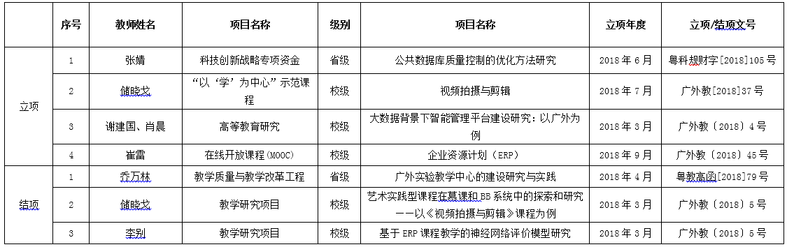 一、2018年至今成功立项/结项的教研、科研项目